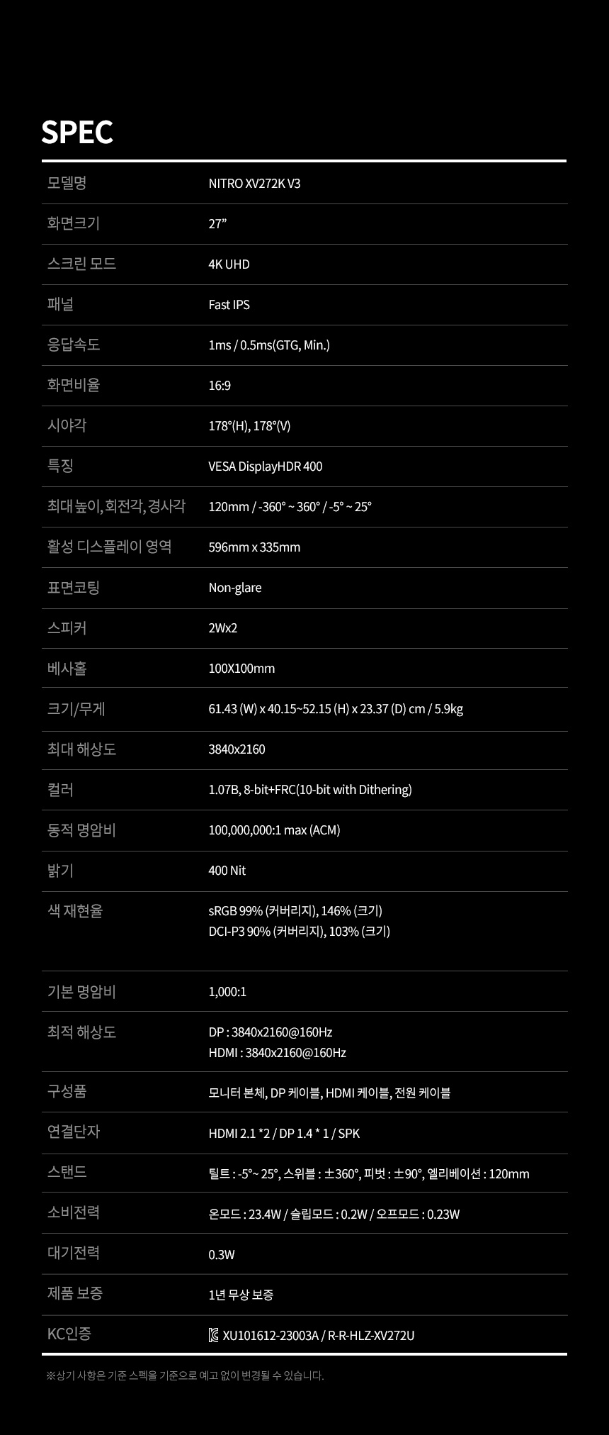 | 품명 및 모델명 | ACER NITRO XV272K V3 | 제조사(수입자/병행수입) | ACER |