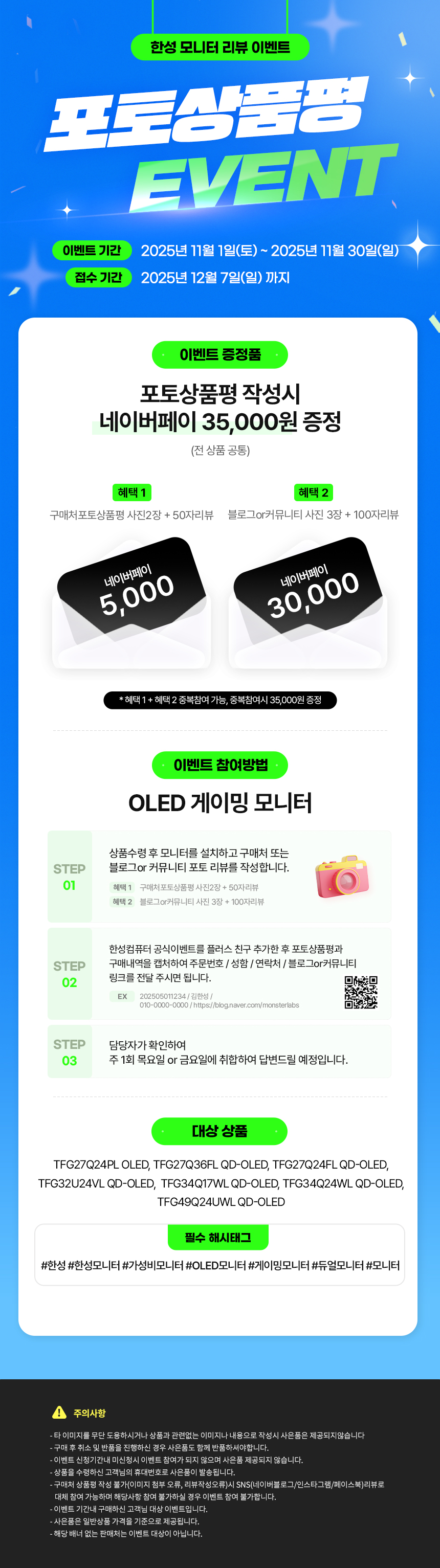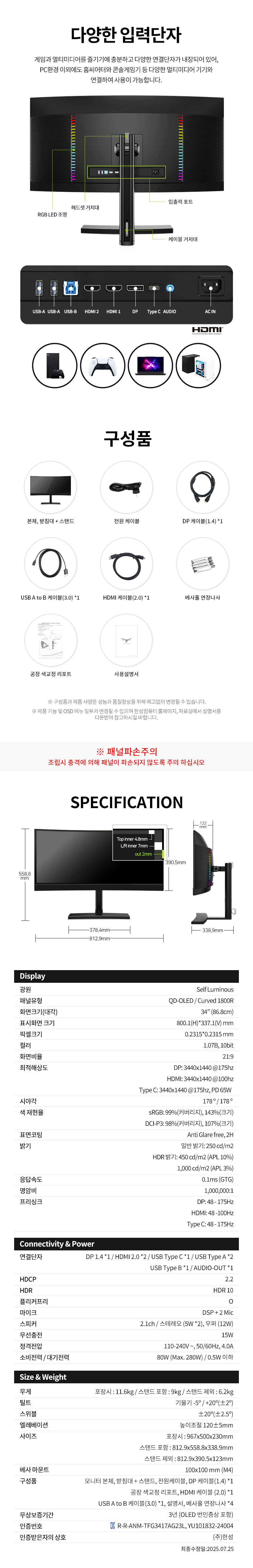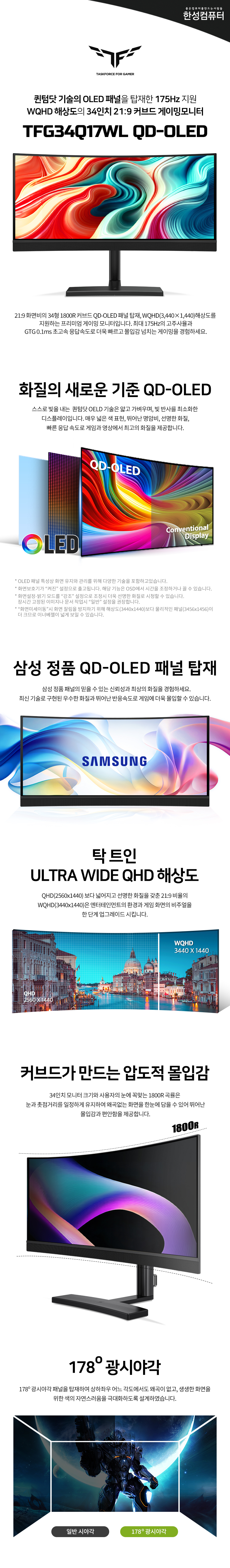 | 품명 및 모델명 | TFG34Q17WL QD-OLED | 제조사(수입자/병행수입) | (주)한성 |