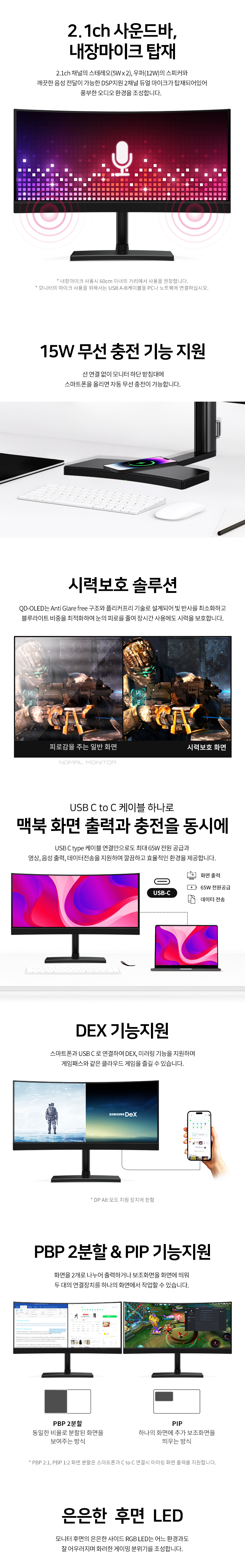 - 86.8cm(34인치) / 울트라와이드(21:9) / QD-OLED / 커브드 / 1800R - 광시야각 / 3440 x 1440(WQHD) / 픽셀피치: 0.2315mm - 175Hz / 0.1ms(GTG) / 250cd / 1,000,000:1 / 플리커 프리 - 블루라이트 차단 / 눈부심 방지 / 논글레어 / PBP / PIP / 헤드폰 아웃 - HDCP 지원 / 틸트(상하) / 엘리베이션(높낮이) / 스위블(좌우) / 베사홀: 100 x 100mm / 80W / 0.5W - 크기(가로x세로x깊이): 812.9x558.8x338.9mm / 9kg - [색상영역] sRGB: 99% / DCI-P3: 98% - [게임특화] FreeSync / G-Sync compatible - [단자정보] HDMI / DP | 0원 |