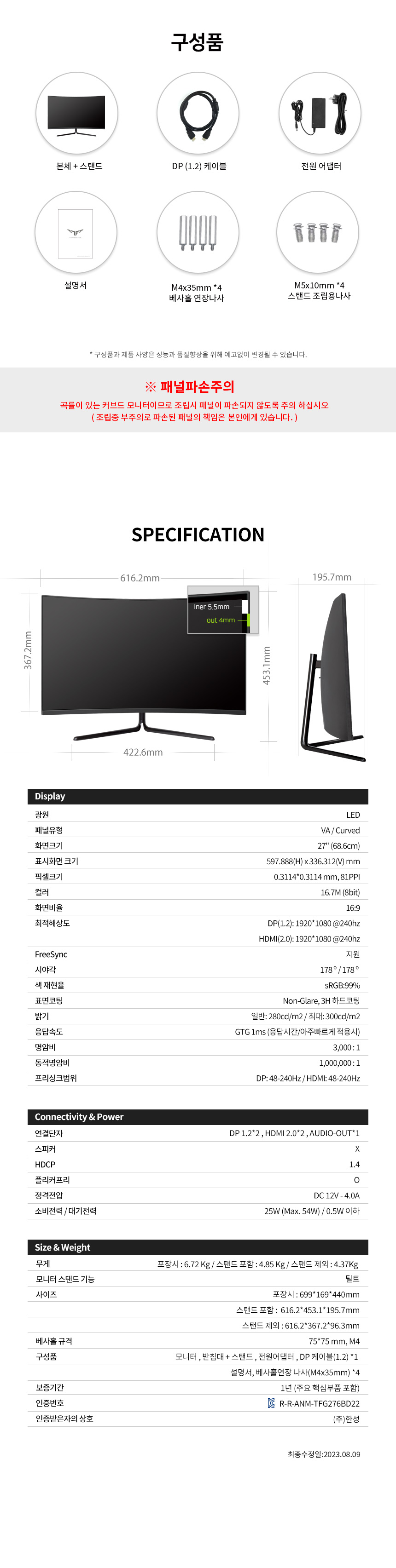 | 동일모델 출시년월 | 2023년 08월 | 화면사양 | 상품상세정보참조 |