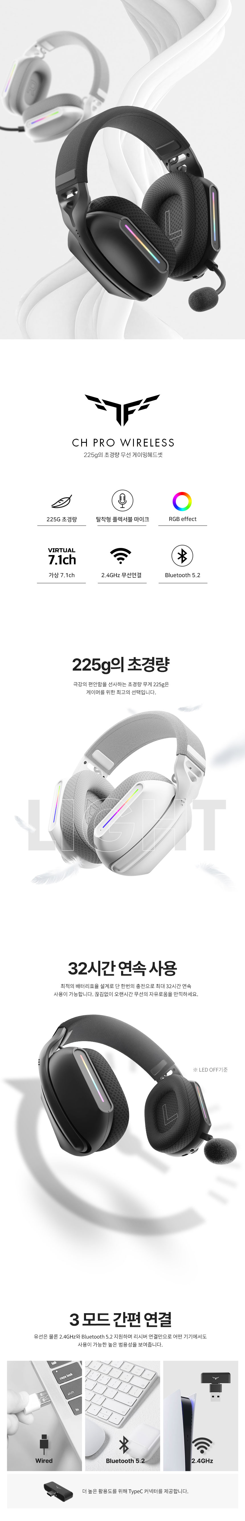 | 품명 및 모델명 | TFG CH PRO Wireless 3모드 초경량 게이밍헤드셋 (블랙/화이트) | 제조사(수입자/병행수입) | 한성컴퓨터 |