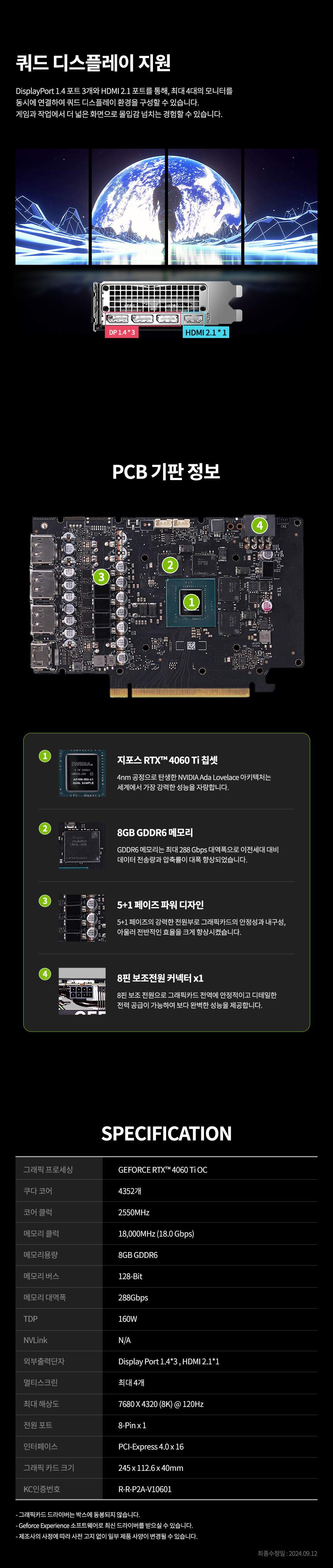 | 품명 및 모델명 | PNY GeForce RTX 4060 Ti XLR8 Gaming OC D6 8GB Dual | 제조사(수입자/병행수입) | PNY |