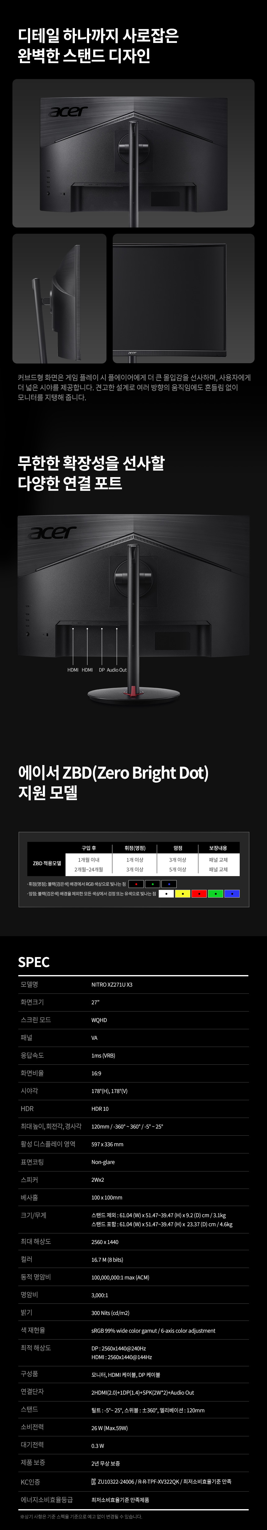 | 품명 및 모델명 | 에이서 니트로 XZ271U X3 | 제조사(수입자/병행수입) | acer |