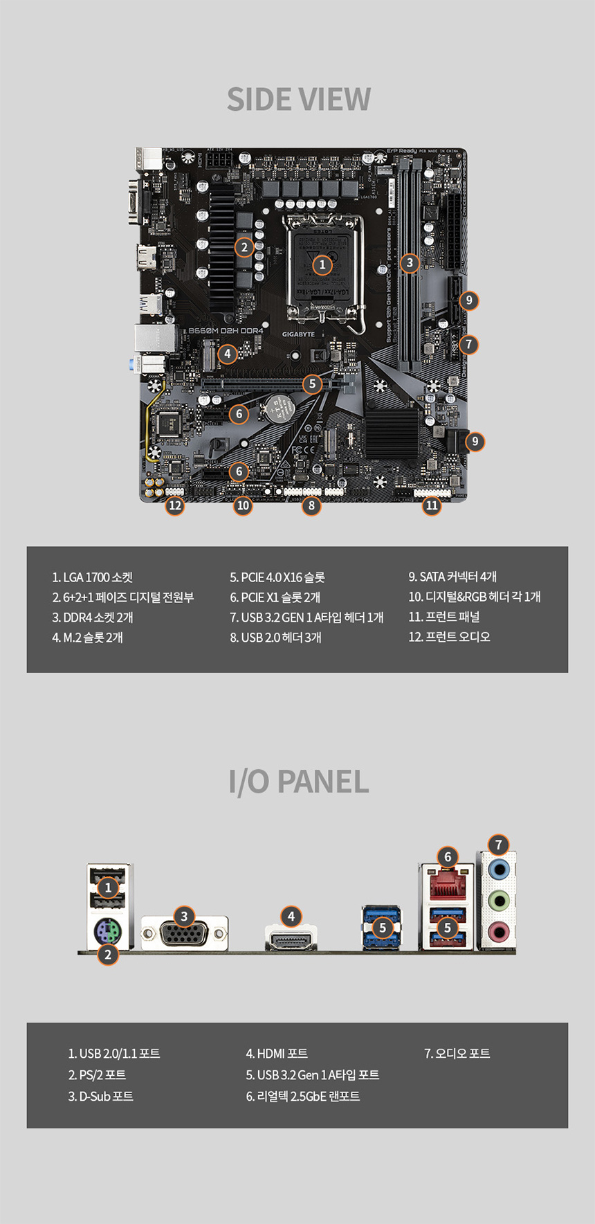 ASUS / 인텔(소켓1700) / 인텔 H610 / M-ATX (22.6x19.3cm) / 메모리 DDR4 / 3200MHz (PC4-25600) / 2개 / 메모리 용량: 최대 64GB / XMP / 확장슬롯 VGA 연결: PCIe4.0 x16 / PCIe버전: PCIe4.0, PCIe3.0 / PCIex16: 1개 / PCIex1: 1개 / 저장장치 M.2: 1개 / SATA3: 4개 / M.2 연결: PCIe , NVMe / 후면단자 D-SUB / HDMI / USB 3.0 / USB 2.0 / RJ-45 / 오디오잭 / PS/2 / 랜/오디오 유선랜 칩셋: Realtek / 기가비트 / RJ-45: 1개 / 오디오 칩셋: Realtek / 7.1채널(8ch) / 내부I/O I/O 헤더: TPM 헤더 / 시스템팬 4핀: 1개 / USB2.0 헤더: 1개 / USB3.0 헤더: 1개 / 특징 UEFI | 0원 |