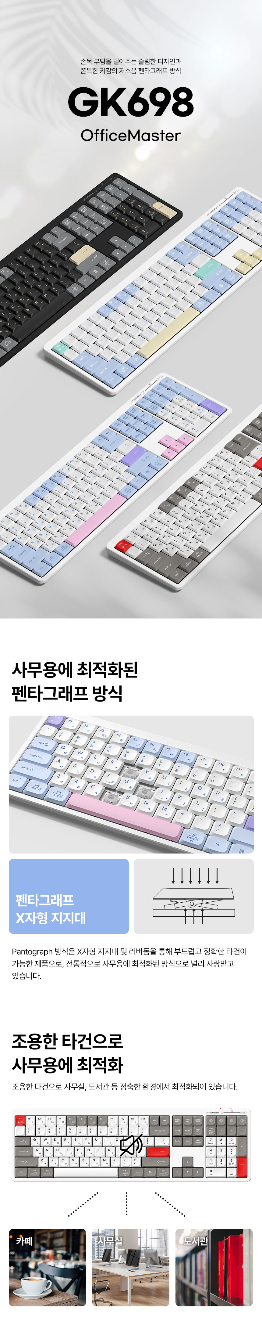 | 품명 및 모델명 | GK698 OfficeMaster 3모드 저소음 펜타그래프 키보드 | 제조사(수입자/병행수입) | (주)한성 |