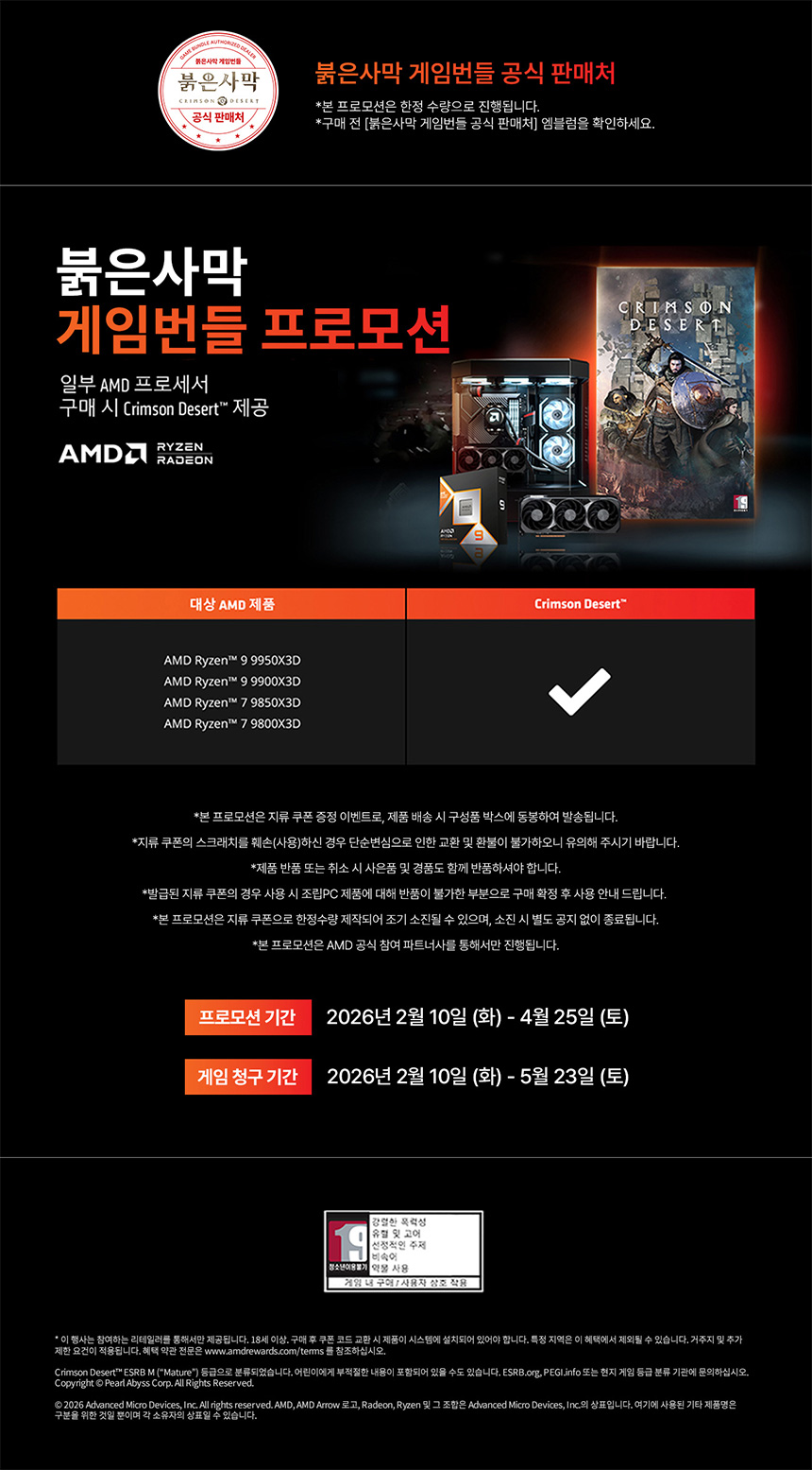 ASRock / AMD(소켓AM5) / AMD B650 / ATX (30.5x24.4cm) / 전원부: 14+2+1페이즈 / 페이즈당80A / Vcore출력합계: 1120A / 메모리 DDR5 / 7200MHz (PC5-57600) / 4개 / 메모리 용량: 최대 256GB / XMP / EXPO / 확장슬롯 VGA 연결: PCIe5.0 x16 / PCIe버전: PCIe5.0, PCIe4.0, PCIe3.0 / PCIex16: 1개 / PCIex16(at x4): 1개 / PCIex1: 1개 / CrossFire / 저장장치 M.2: 3개 / SATA3: 4개 / M.2 연결: PCIe5.0, PCIe4.0, NVMe / 후면단자 HDMI / DP / USB3.x 20Gbps / USB3.x 10Gbps / RJ-45 / S/PDIF / 오디오잭 / BIOS 플래시백 / USB A타입: 8개 / USB C타입: 2개 / 랜/오디오 유선랜 칩셋: Realtek RTL8125BG / 2.5Gbps / RJ-45: 1개 / 무선랜(Wi-Fi) / 블루투스 / 오디오 칩셋: Realtek ALC4082 / 7.1채널(8ch) / 내부I/O USB/팬 헤더: USB3.0 헤더 , USB2.0 헤더 , USB3.0 Type C 헤더 , RGB 12V 4핀 헤더 , ARGB 5V 3핀 헤더 , 펌프전용 헤더 / 시스템팬 4핀: 4개 / I/O 헤더: TPM 헤더, 프론트오디오AAFP 헤더 / DrMOS / 전원부 방열판 / M.2 히트싱크 / 일체형IO실드 / UEFI | 0원 |