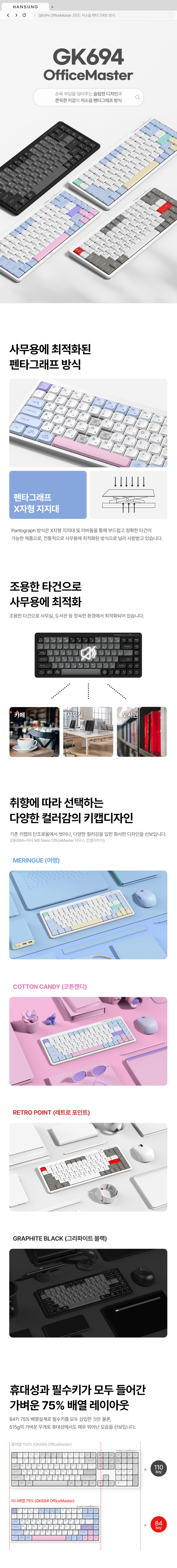 | 품명 및 모델명 | GK694 OfficeMaster 3모드 저소음 펜타그래프 키보드 | 제조사(수입자/병행수입) | (주)한성 |