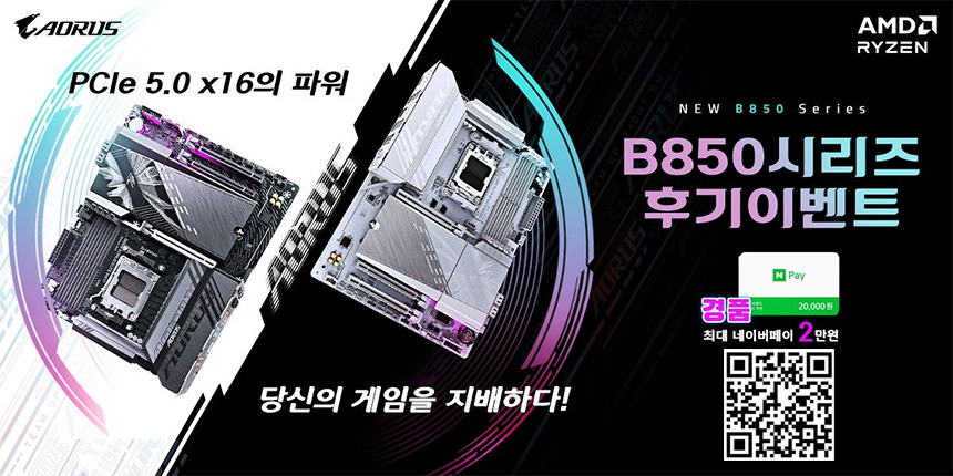 AMD(소켓AM5) / AMD B850 / ATX (30.5x24.4cm) / 전원부: 14+2+2페이즈 / 페이즈당60A / Vcore출력합계: 840A / [메모리] DDR5 / 8200MHz (PC5-65600) / 4개 / 메모리 용량: 최대 256GB / XMP3.0 / EXPO / [확장슬롯] VGA 연결: PCIe5.0 x16 / PCIe버전: PCIe5.0, PCIe3.0 / PCIex16: 1개 / PCIex16(at x1): 2개 / [저장장치] M.2: 3개 / SATA3: 4개 / M.2 연결: PCIe5.0, PCIe4.0, NVMe / [후면단자] DP / USB3.x 10Gbps / USB3.x 5Gbps / USB 2.0 / RJ-45 / S/PDIF / 오디오잭 / BIOS플래시백 / USB A타입: 11개 / USB C타입: 1개 / [랜/오디오] 유선랜 칩셋: Realtek / 2.5Gbps / RJ-45: 1개 / Realtek RTL8922AW / 무선랜(Wi-Fi) / 블루투스 / 오디오 칩셋: Realtek / 7.1채널(8ch) / [내부I/O] USB/팬 헤더: USB3.0 헤더 , USB2.0 헤더 , USB3.2 Type C 헤더, RGB 12V 4핀 헤더 , ARGB 5V 3핀 헤더 / [특징] DrMOS / 전원부 방열판 / M.2 히트싱크 / 일체형IO실드 / LED라이트 / UEFI | 0원 |