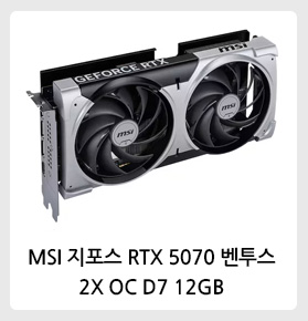 RTX 5070 / 4nm / 베이스클럭: 2325MHz / 부스트클럭: 2610MHz / OC클럭: 2625MHz / 스트림 프로세서: 6144개 / PCIe5.0x16 / GDDR7 / 출력단자: HDMI2.1 , DP2.1 / 지원정보: 8K 지원 , HDR 지원 , HDCP 2.3 / 사용전력: 250W / 정격파워650W 이상 / 전원 포트: 16핀(12V2x6) x1 / 3팬 / 가로(길이): 338mm / 두께: 50mm / 제로팬(0-dB기술) / 백플레이트 / DrMOS / LED 라이트 / MYSTIC LIGHT / 구성품: VGA지지대, 2x8핀 to 16핀 커넥터 / A/S 3년 | 0원 |