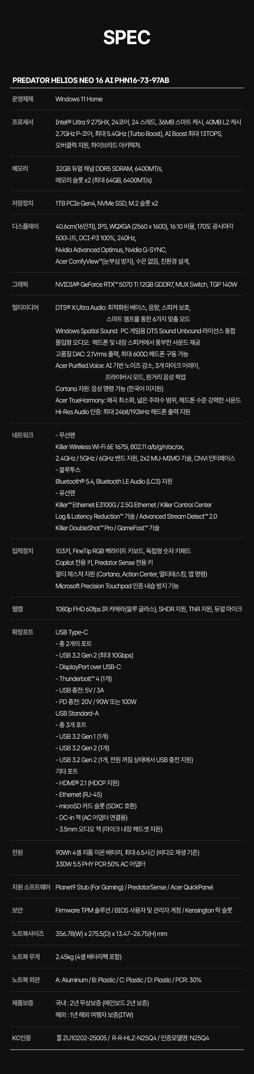 ![[한성] 에이서 프레데터 헬리오스 네오 16 PHN16-73-97AB 게이밍 노트북 (U9 275HX RTX5070Ti 240Hz Win11)](https://static.superstore.co.kr/img/itemimg/big/205189_HivpTB.jpg?resize=837x837)