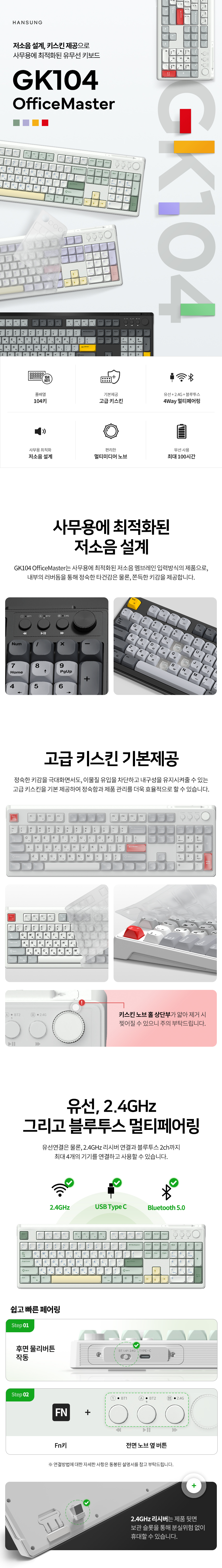 | 품명 및 모델명 | GK104 OfficeMaster 3모드 저소음 멤브레인 키보드 | 제조사(수입자/병행수입) | (주)한성 |
