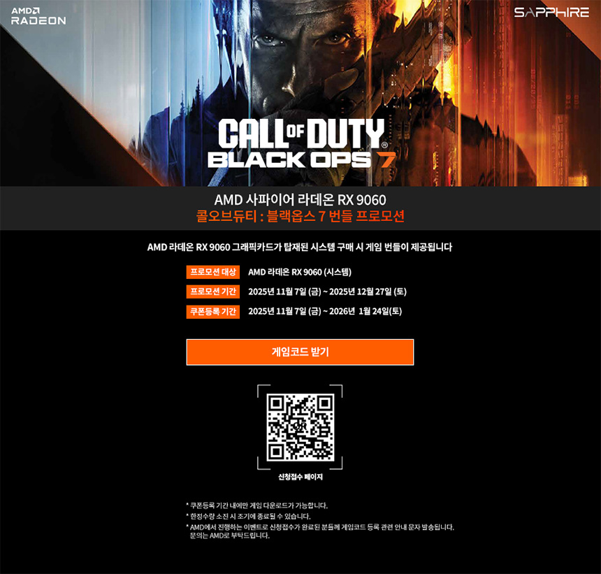 RX 9060 / PCIe5.0x16 / 정격파워450W 이상 / 전원 포트: 8핀 x1 / 가로(길이): 200mm / 베이스클럭: 1520MHz / 부스트클럭: 3040MHz / 스트림 프로세서: 1792개 / GDDR6 / 출력단자: HDMI2.1 , DP2.1 / 지원정보: 8K 지원 / 사용전력: 136W / 2팬 / 두께: 40.6mm / 백플레이트 / A/S 3년 | 0원 |