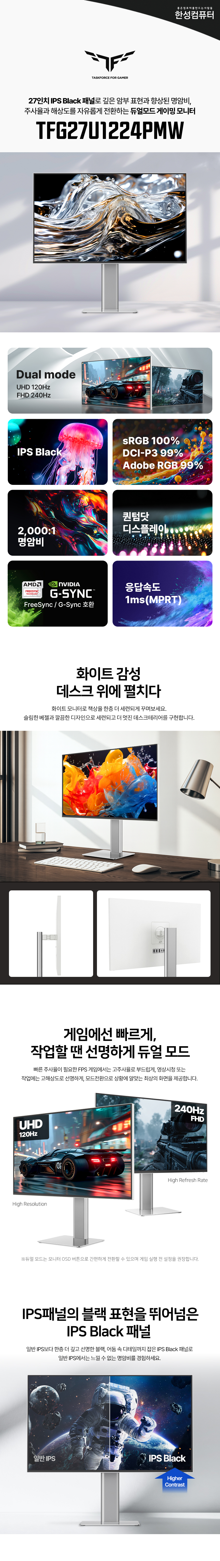 | 품명 및 모델명 | TFG27U1224PMW | 제조사(수입자/병행수입) | (주)한성 |