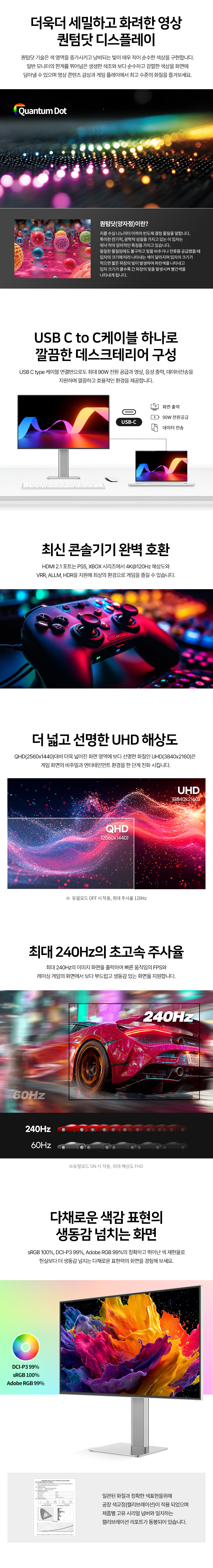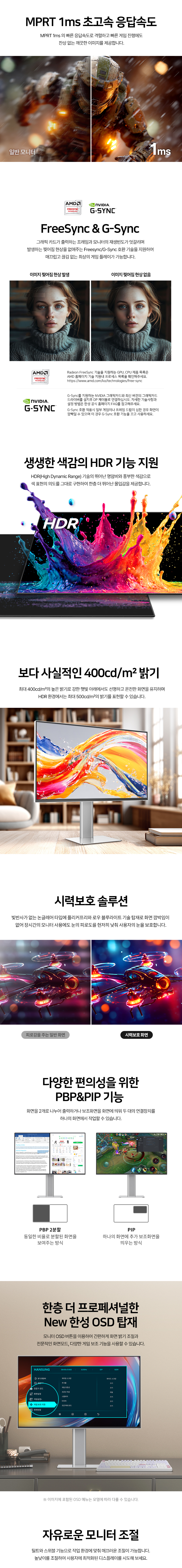 - 일반/무결점 선택가능 - 68.5cm(27인치) / IPS Black / 평면 / 광시야각 - 1920 x 1080(FHD) / 3840 x 2160(4K UHD) / 픽셀피치: 0.1554mm / 240Hz / 120Hz / 1ms(MPRT) / PBP / PIP - 400cd / 2,000:1 / 1,000,000:1 / 블루라이트 차단 / 눈부심 방지 - 논글레어 / HDCP 지원 / 자동 밝기 조절 / 베사홀: 100 x 100mm / 40W - 피벗(회전) / 엘리베이션(높낮이) / 틸트(상하) / 스위블(좌우) - 크기(가로x세로x깊이): 614x552x195mm / 5.2kg - [색상영역] 10bit (8bit + Hi FRC) / sRGB: 100% / DCI-P3: 95% - [게임특화] 게임모드 지원 / FreeSync / G-Sync compatible / Adaptive Sync - [단자정보] HDMI 2.1 / DP 1.4 / Type C | 0원 |