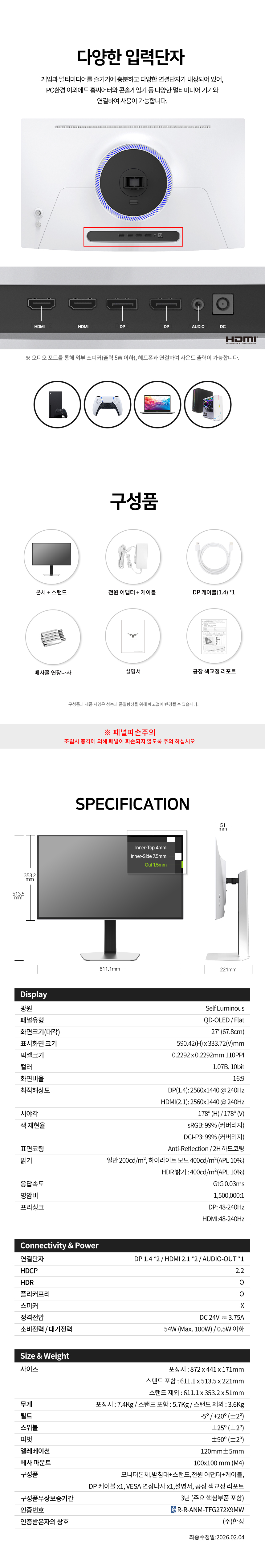 | 동일모델 출시년월 | 202602 | 화면사양 | 상품상세정보참조 |