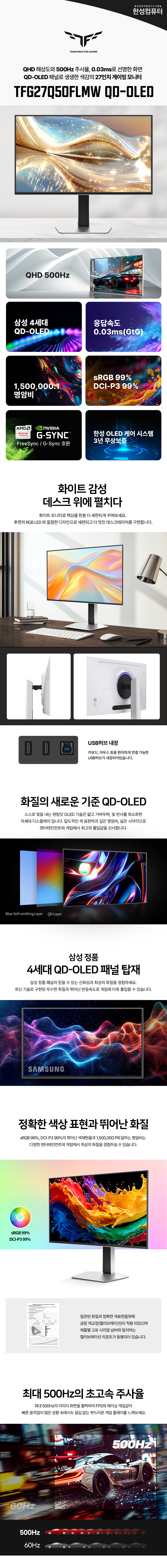 | 품명 및 모델명 | TFG27Q50FLMW QD-OLED | 제조사(수입자/병행수입) | (주)한성 |