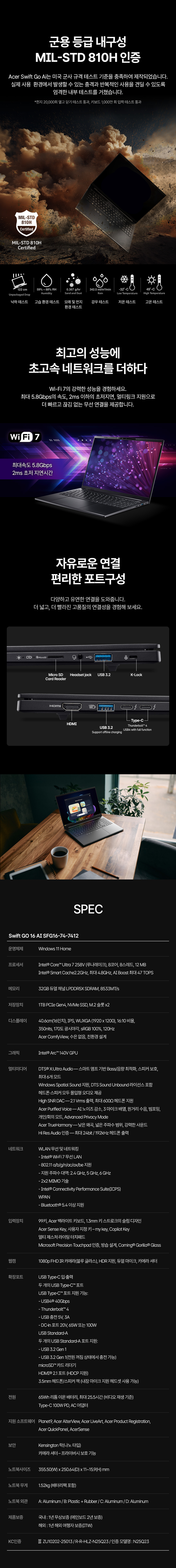 | 품명 및 모델명 | SFG16-74-7412 | 제조사(수입자/병행수입) | ACER |