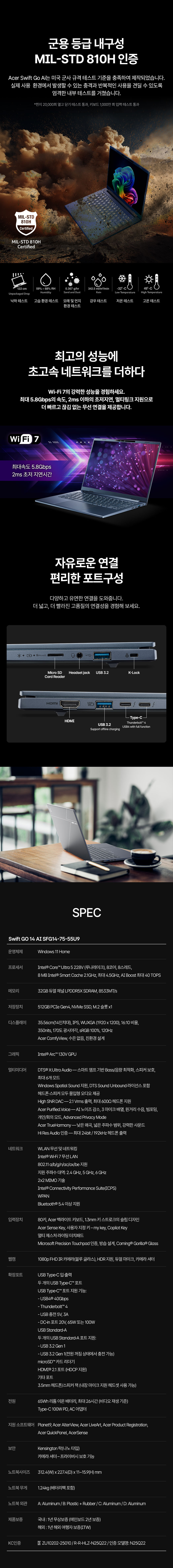 | 품명 및 모델명 | SFG14-75-55U9 | 제조사(수입자/병행수입) | ACER |