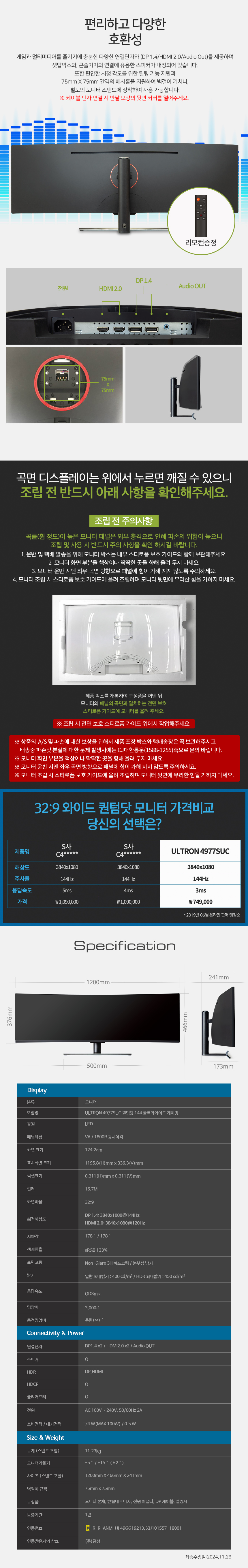 | 동일모델 출시년월 | 2018년 10월 | 화면사양 | 상품상세정보참조 |
